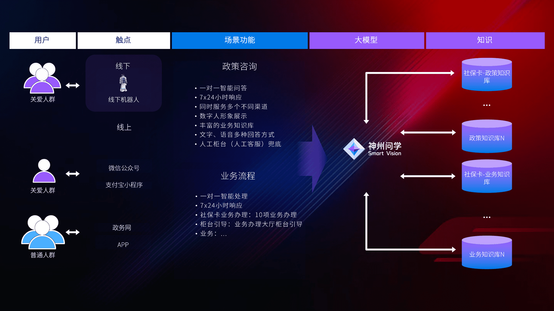 • 线上线下全覆盖:线上提供微信公众号、、、、支付宝小程序、、、政务网、、、、app多种渠道,,与线下机器人形成完整服务体系。。